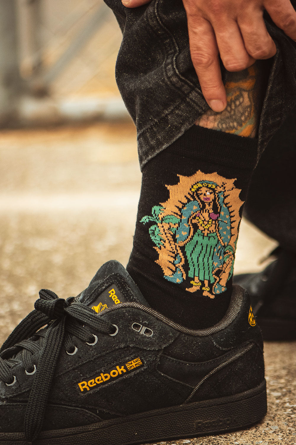 先日のイベントで先行販売されていたものを購入しましたが、足底を支える肉厚な生地のおかげで心地よく履くことができ、また長時間歩いていてもズレ落ちてこないのに締め付けもなくストレスを感じず履けますね!